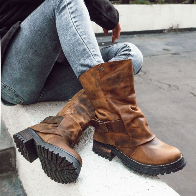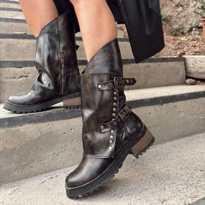 - TACO DE GOMA FORRADO EN CUERO ENVEJECIDO DE 5CMS.
