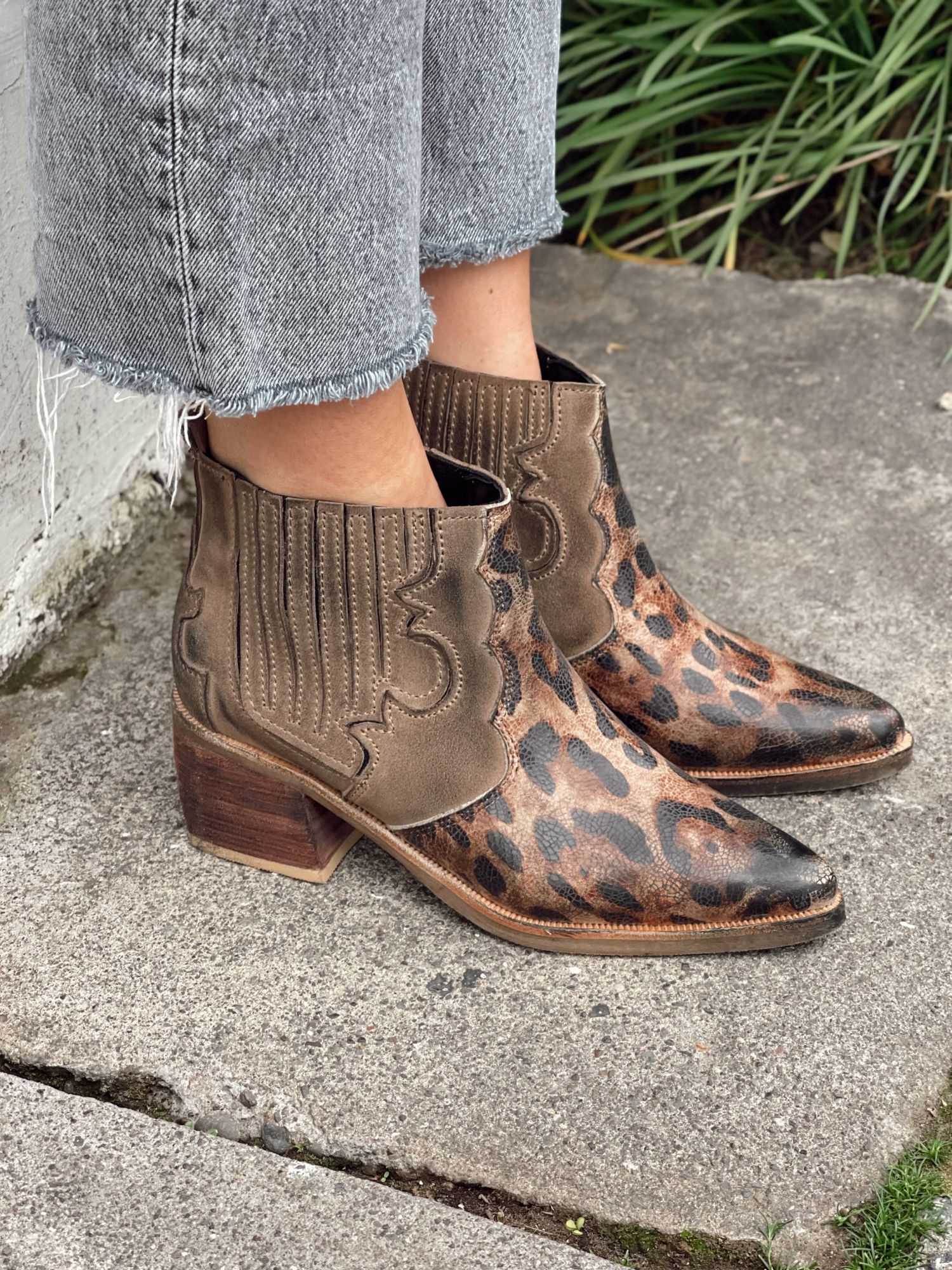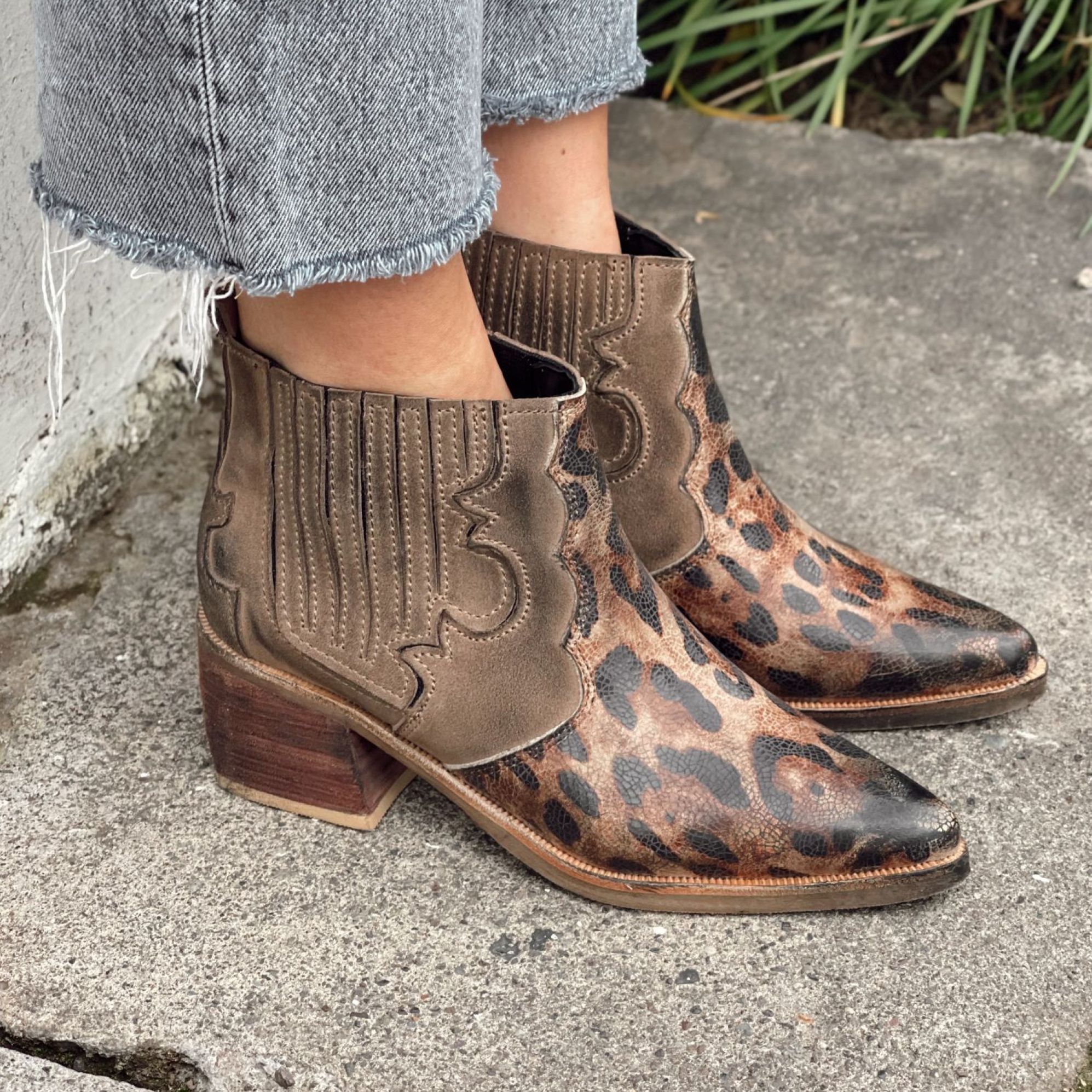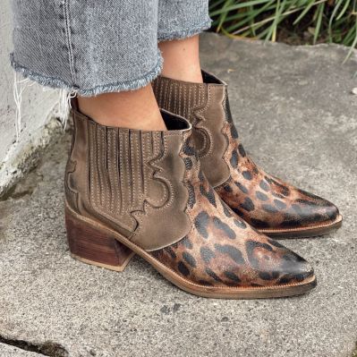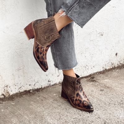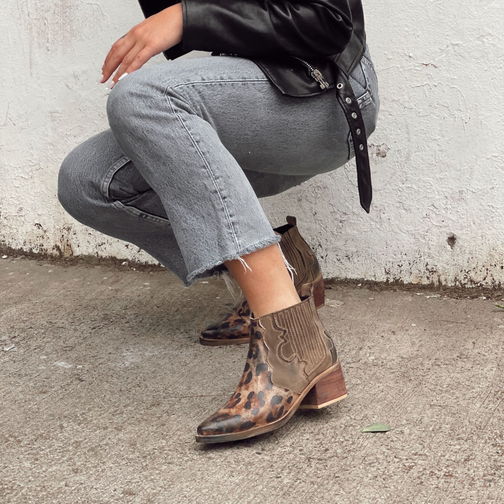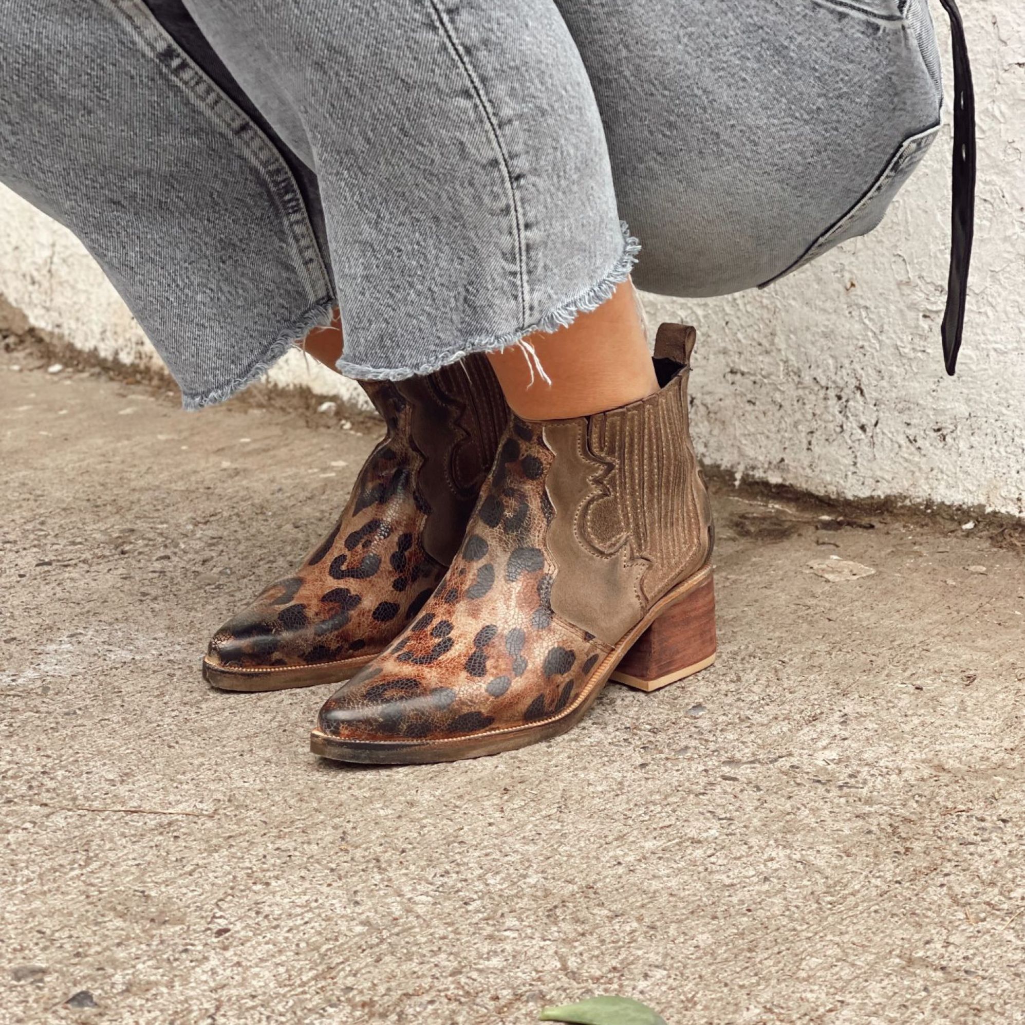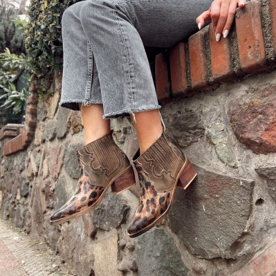 $49.990- CUERO FOLIA LEOPARDO Y GAMUZA TAUPE ENVEJECIDOS DE MANERA ARTESANAL.
