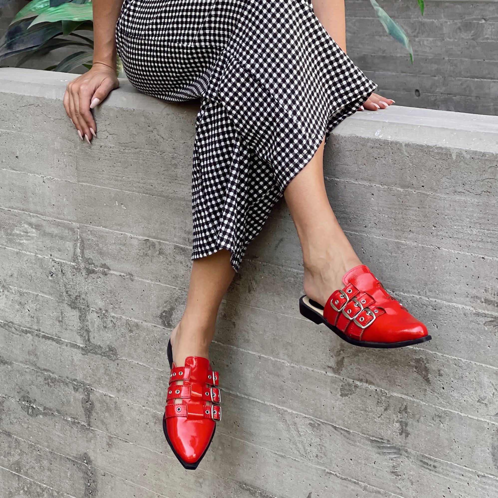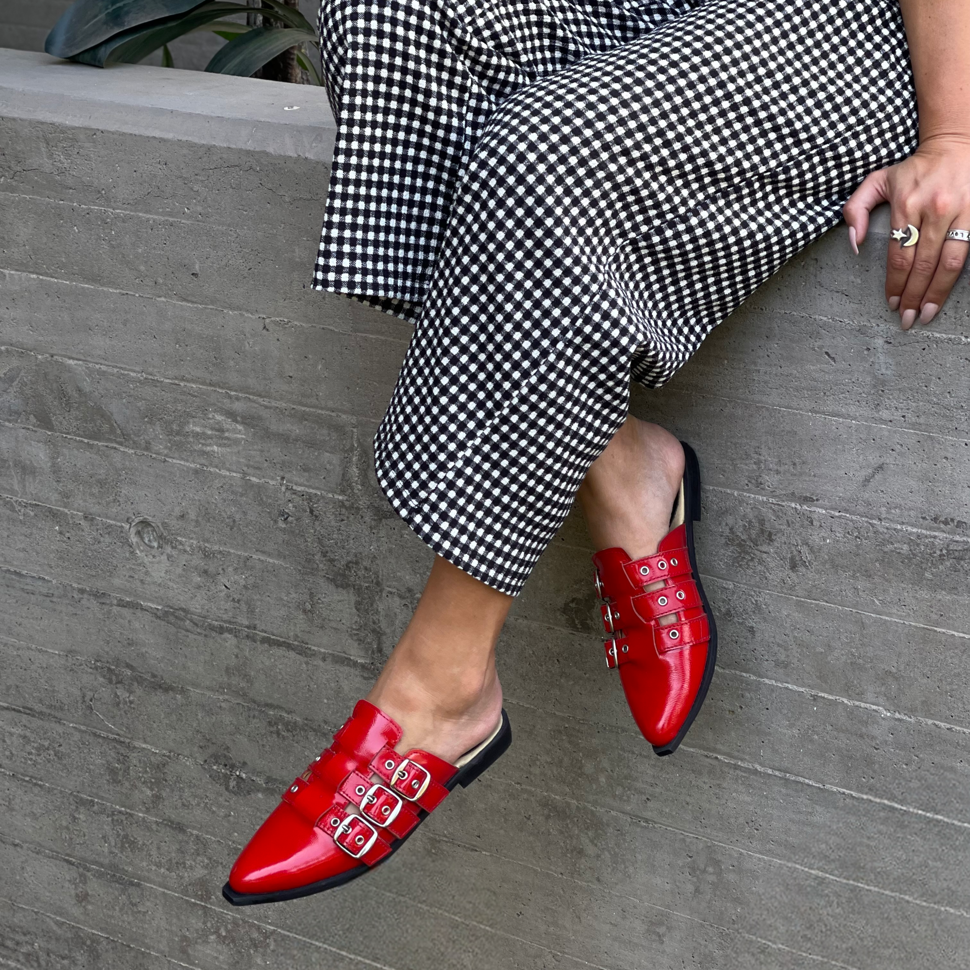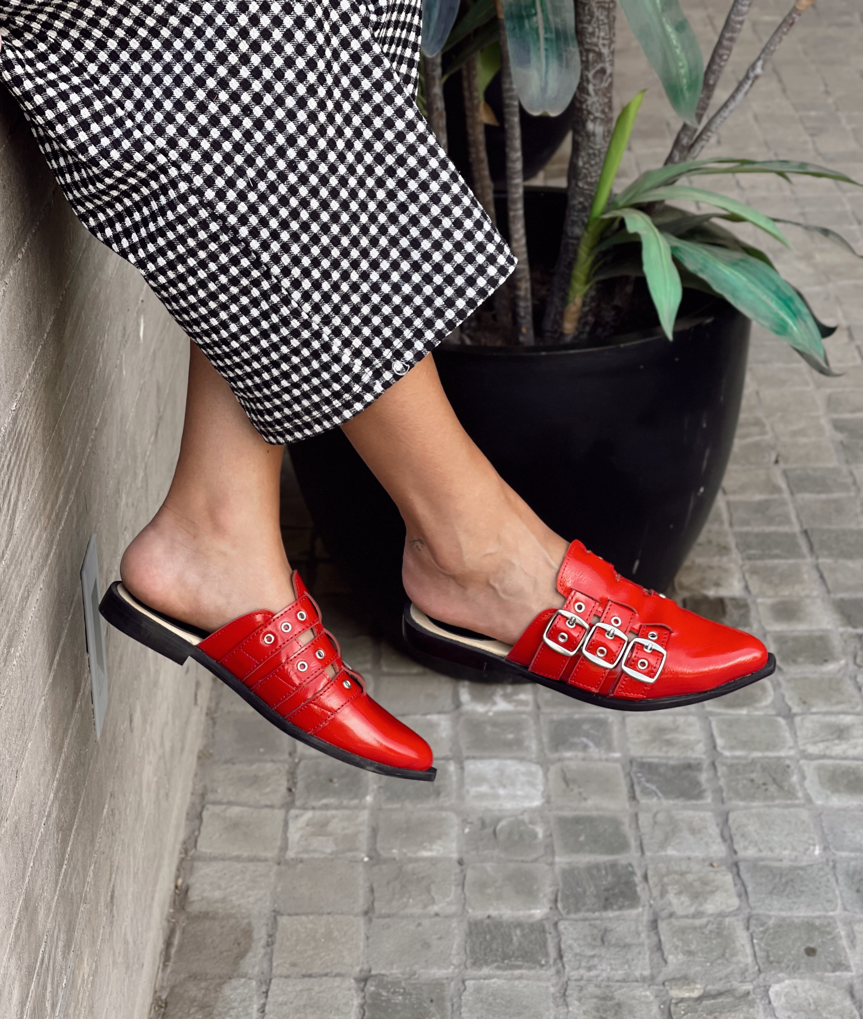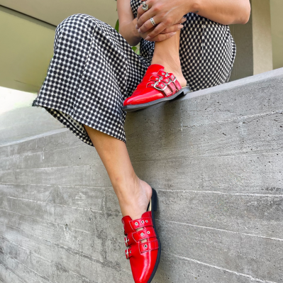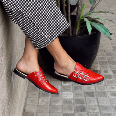 Cuero charol rojo.