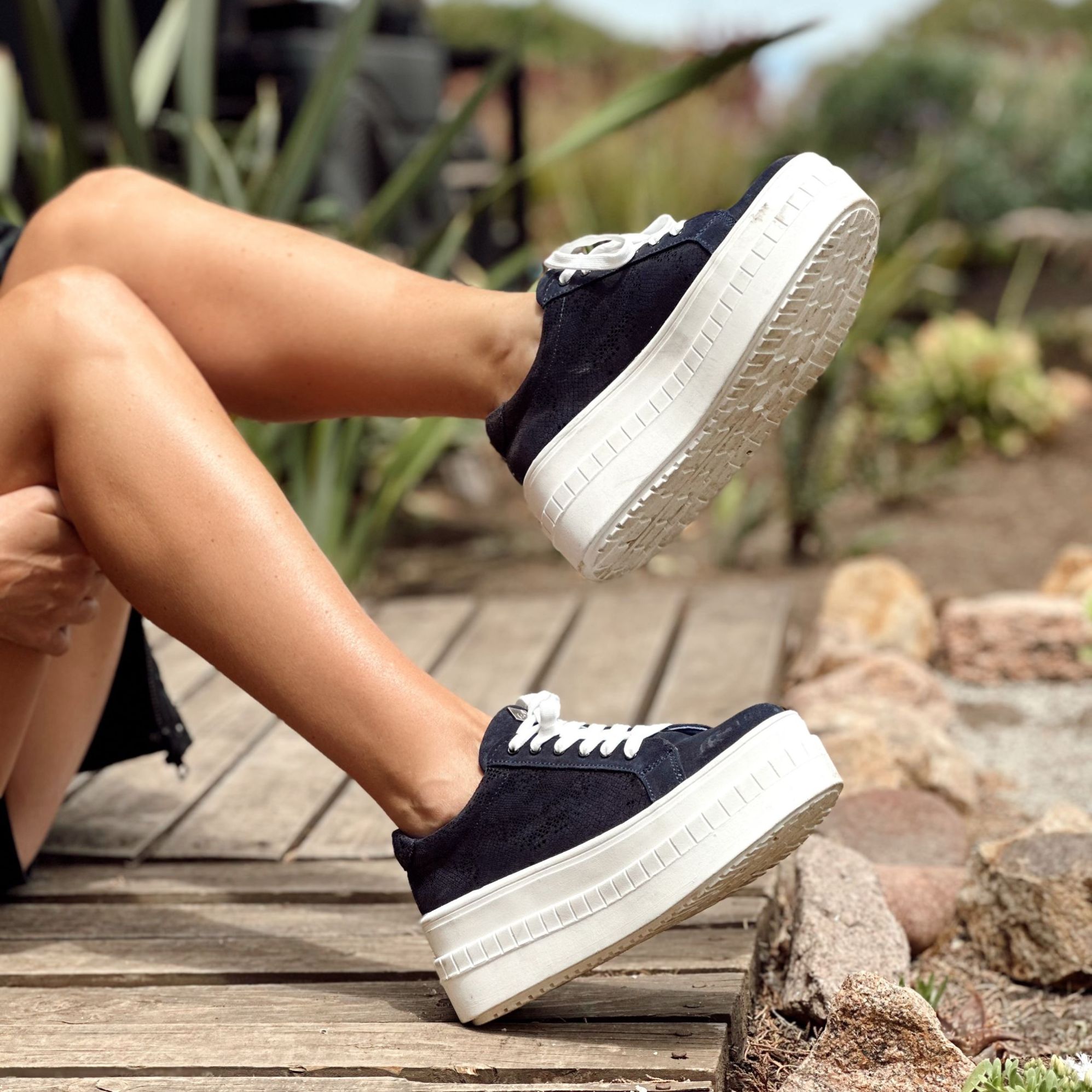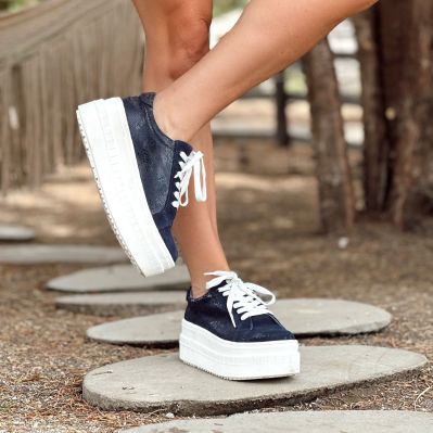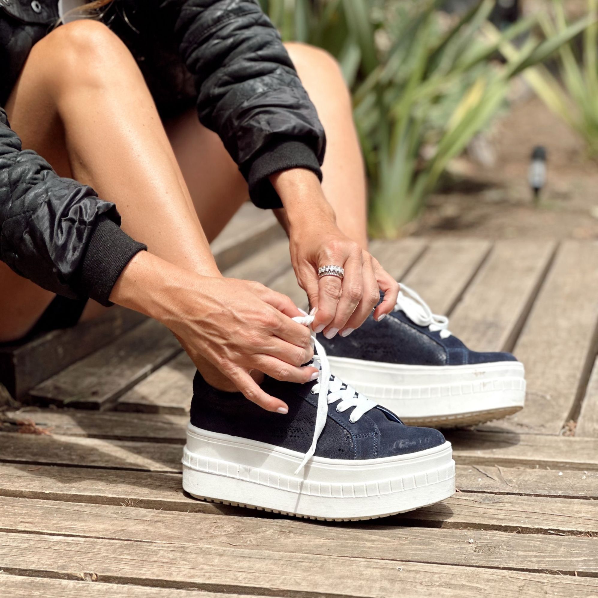- CUERO RENO AZUL COMBINADO CON FOLIA AZUL DE DISEÑO.