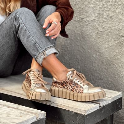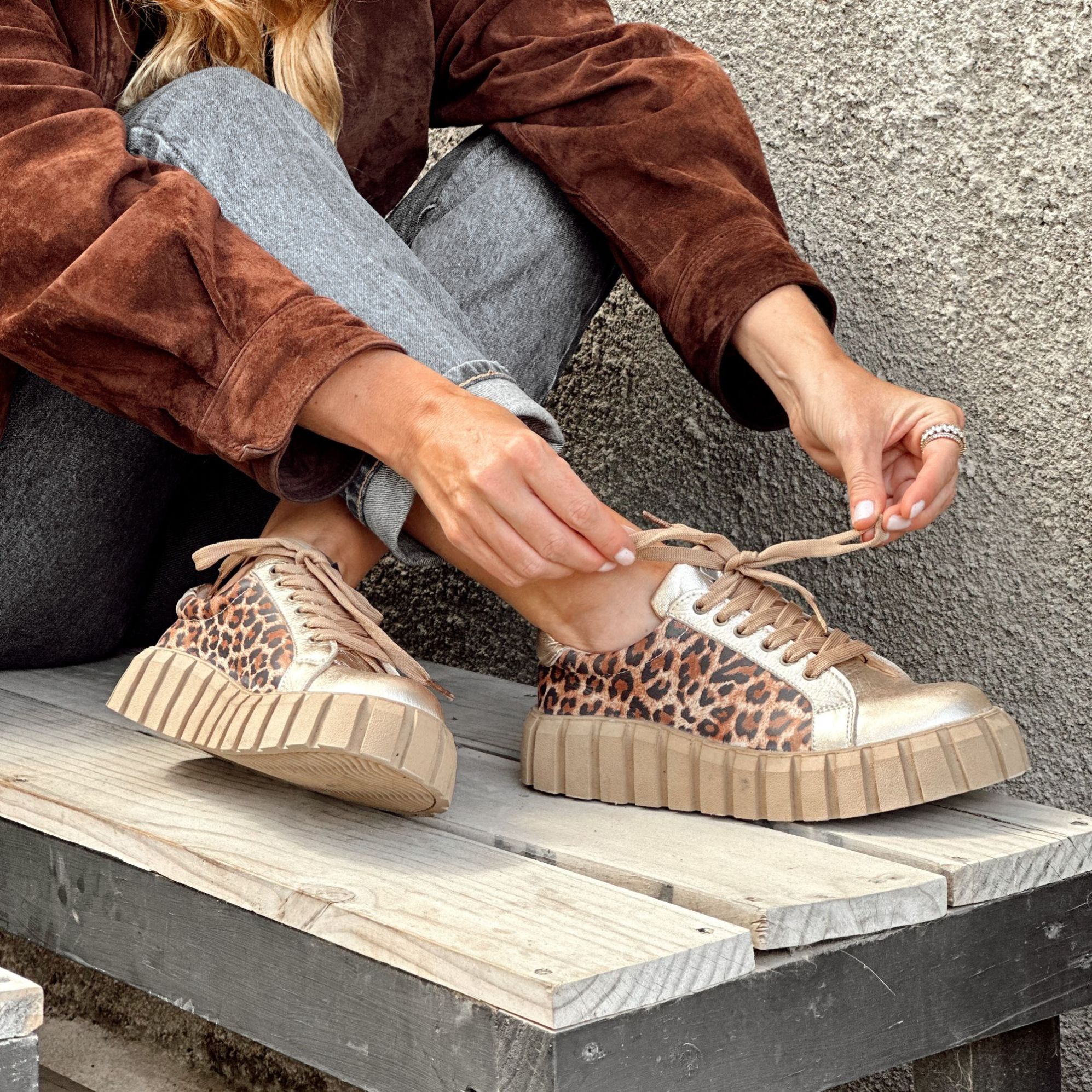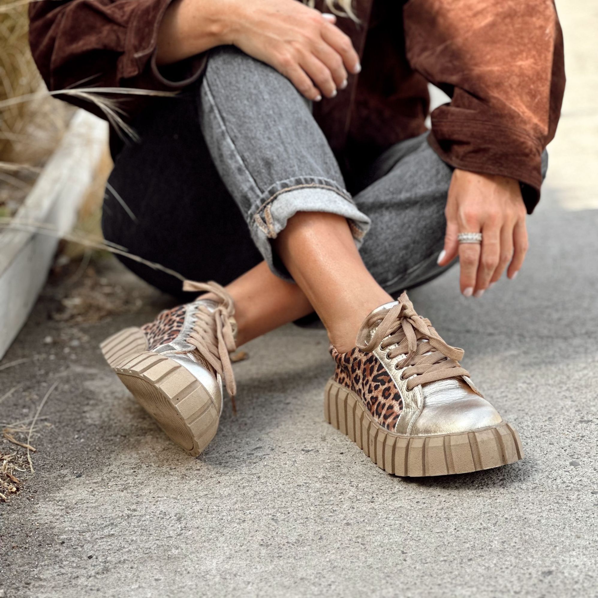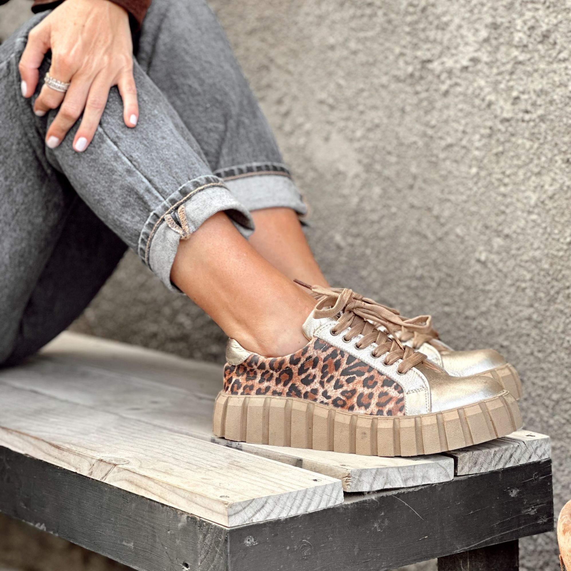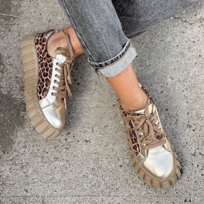 $39.990- Cuero Combinado Animal Print con Dorado.