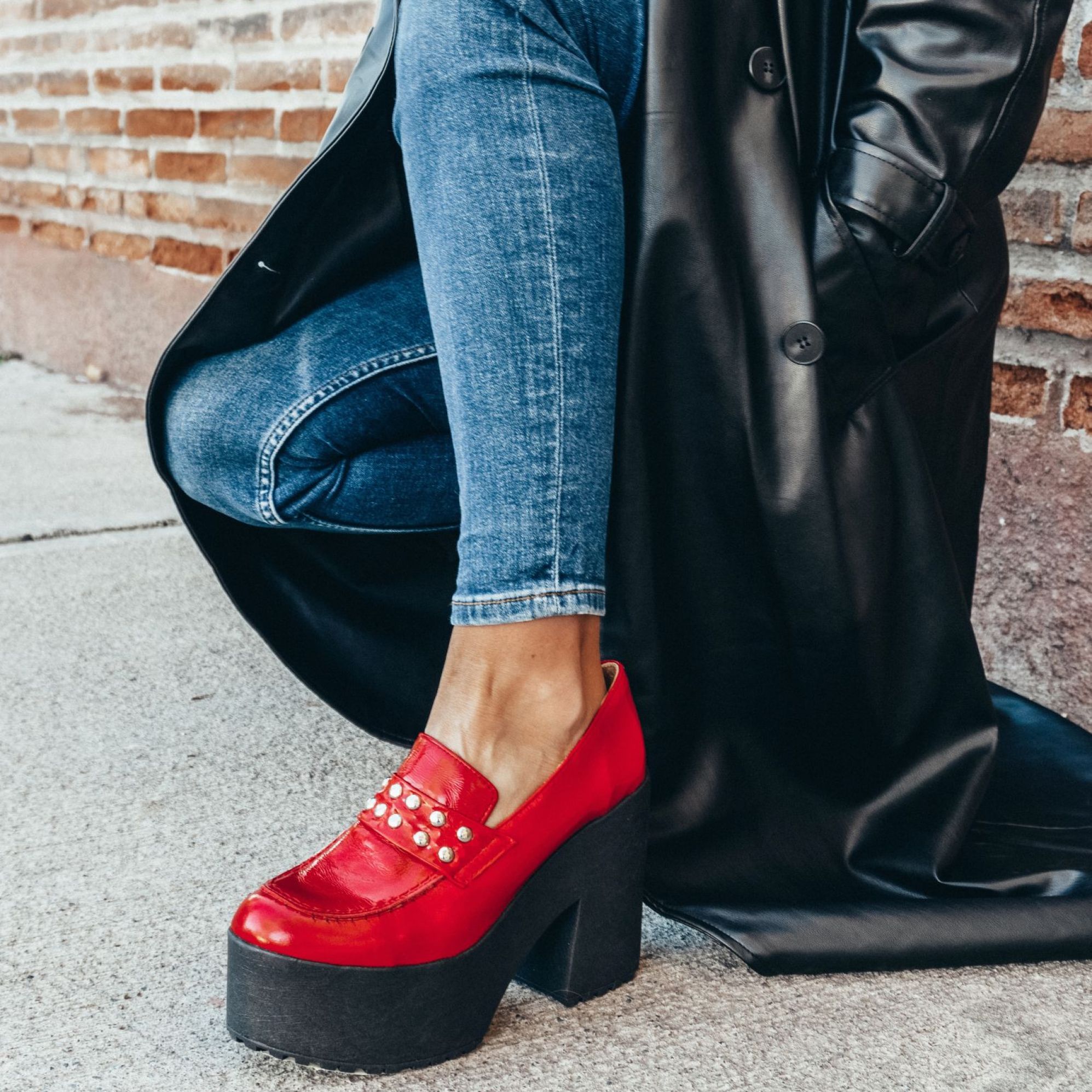 MOCASIN HECHO DE CUERO CHAROL ROJO